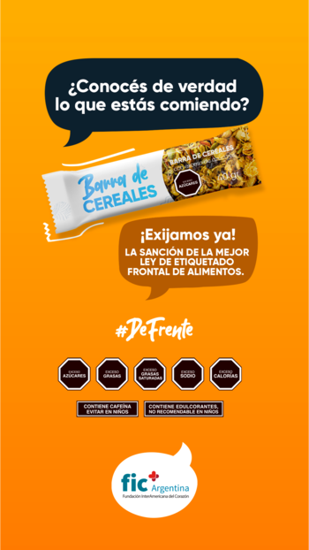 “¿Conocés de verdad lo que estás comiendo?”. La pregunta irrumpe una y otra vez junto a paquetes de galletitas, gaseosas o barras de cereal y forman parte de la campaña #DeFrente, lanzada en las últimas semanas por la Fundación Interamericana del Corazón (FIC Argentina). La respuesta al interrogante da cuenta de la necesidad de “advertencias claras para tomar mejores decisiones”.