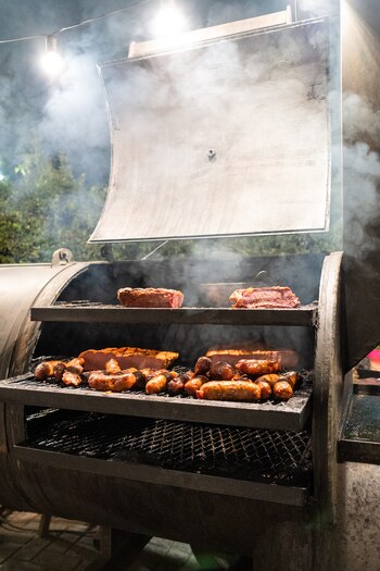 Hamburguesas de vacío, asado y entraña en Asado Campero - $700. Clásica hamburguesa a la parrilla, con cheddar, panceta, cebolla caramelizada y barbacoa en La Magia del Flaco $ 600.