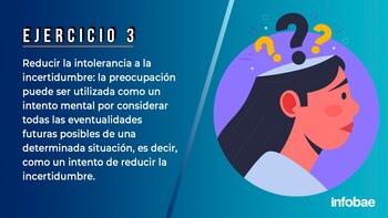 En ese sentido, la licenciada Echeverría presenta una serie de ejercicios y técnicas que pueden ayudar a gestionar la preocupación de una forma más adaptativa, mejorando así la calidad de vida y la salud mental. Si intentamos gestionar los niveles de ansiedad, podremos liberar carga mental para llevar a cabo otras actividades más productivas y disminuir el grado de malestar.
