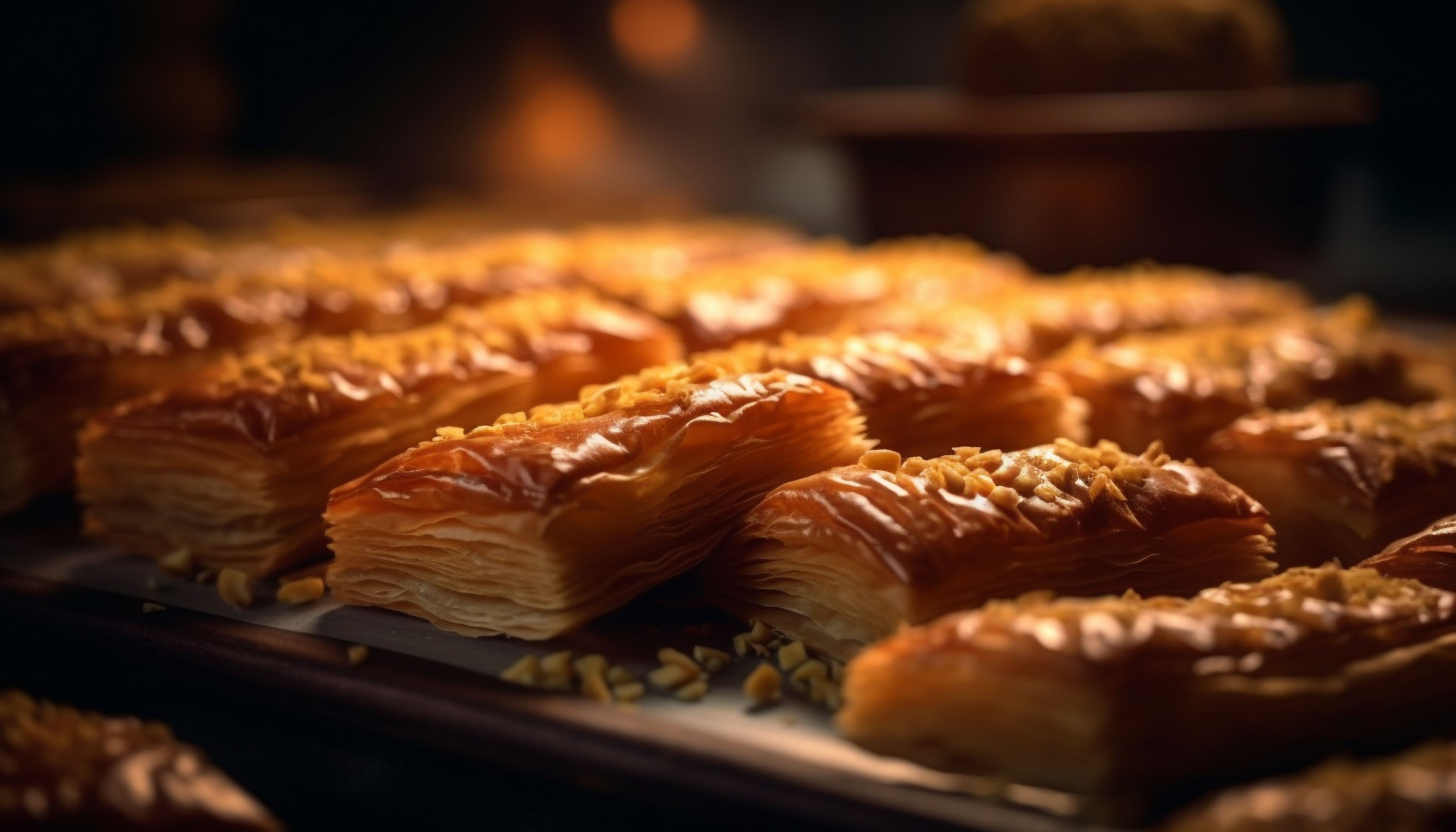 Este postre tiene sus raíces en el Imperio Otomano por eso forma parte de la cultura de Turquía. Pero también se lo prepara en otros lugares como los Balcanes, el Cáucaso y el norte de África, adonde llevó justamente de la mano de los pobladores de la antigua Constantinopla, que gobernó esas regiones. Sus delicadas capas se deshacen en la boca, se sirven en grandes bandejas, cortadas en rombos, rellenas de nueces molidas y goteando jarabe de miel.
