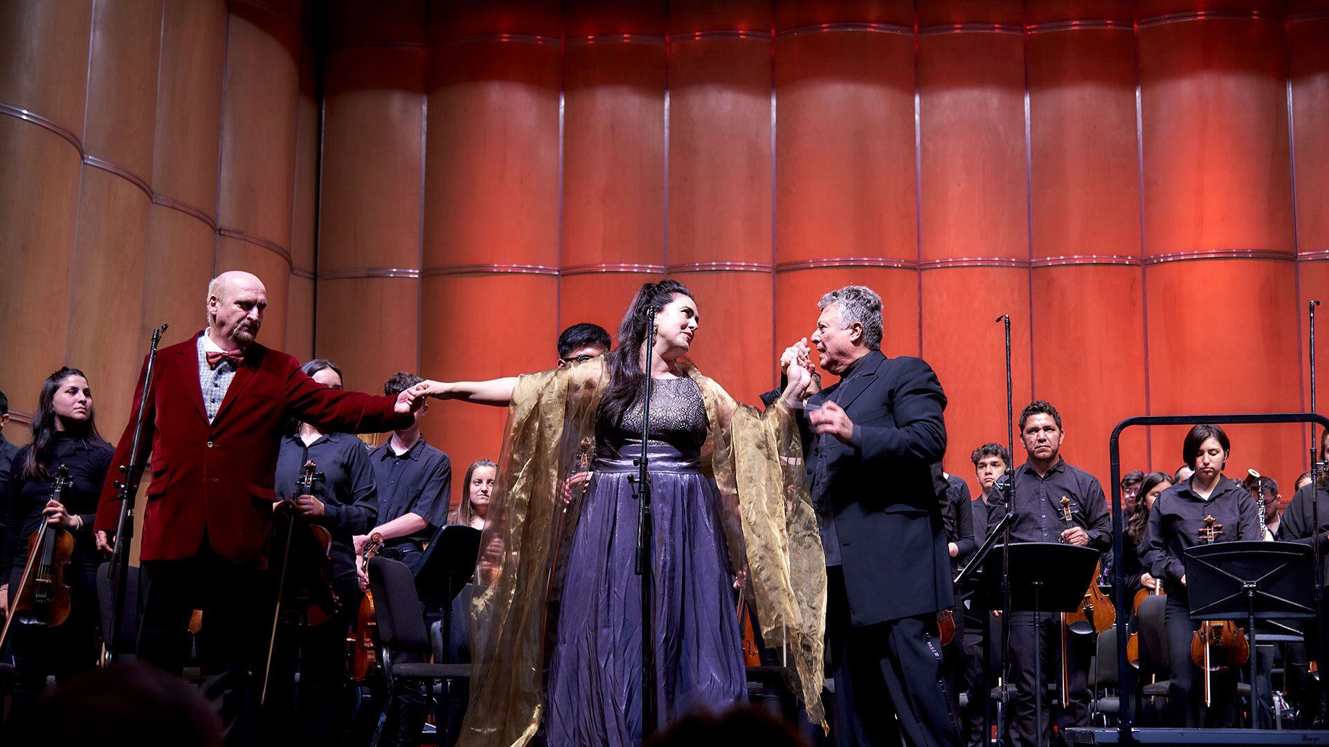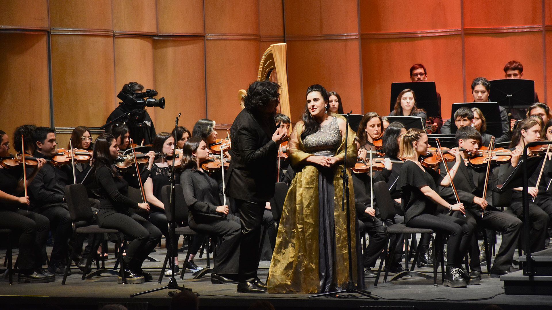 La soprano Marina Silva, junto a la mezzo soprano Alejandra Malvino, el tenor Enrique Folger y el barítono Omar Carrión se unieron para deleitar a la audiencia con sus voces. Acompañados por la Orquesta-Escuela de Chascomús y músicos de diferentes provincias, esta noche inolvidable estuvo bajo la dirección de Carlos Vieu.
