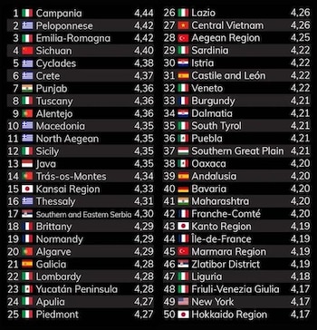Lista completa de las 100 mejores regiones gastronómicas del mundo