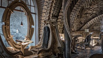 "Al principio del proyecto estaba fascinado con la estructura del lugar básicamente por su antigüedad. Las rocas envejecidas, me dieron la idea así que utilicé cemento y fibra de vidrio para poder copiar el ambiente, el resto vino solo a mi mente", aseguró Hans Rudi Giger diseñador, artista y escultor del bar a secret magazine.