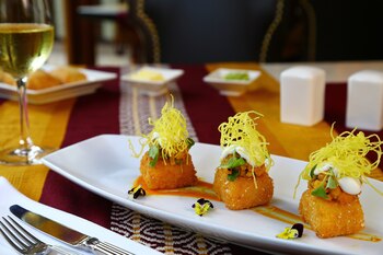 La propuesta gastronómica del Belmond Sacred Valey, justo al pie del santuario, es El Huerto, donde la fusión de los secretos culinarios de la región con algunos giros exclusivos, hierbas frescas y especias se entrelazan para lograr ideas como su ensalada kilómetro cero, resultado de productos cosechados en las terrazas tradicionales de la cultura inca. O bien la Ensalada de Tepuy con brotes orgánicos, berenjena frita, cebolla encurtida, ajonjolí, queso de cabra rallado y salsa de piña. Y el inigualable Paiche al rocoto y kion: pescado asado cubierto con juliana de kion y cebolla china, aromatizado con aceite de ajonjolí en caldo de shiitakes y acompañado de arroz frito con quinua.
