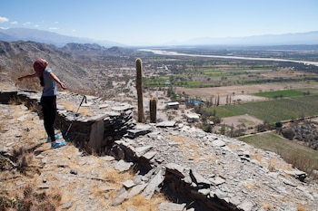 Un recorrido de un kilómetro y medio lleva a un cerro, cuya cumbre se encuentra a unos 300 metros sobre el nivel del río Santa María. Desde allí se puede observar en 360 grados la inmensidad de este inasible paisaje precordillerano. Y allí mismo también se encuentra enclavado un símbolo de la cultura incaica: la “Intiwatana” o “ventanita”. A simple vista, no es más que un portal erigido con piedras. Sin embargo, en este lugar suele celebrarse cada junio el “Inti Raymi”, una conmemoración tradicional de los pueblos andinos que homenajea la llegada del solsticio de invierno.