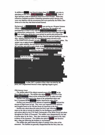 Нові документи, широко написані та з інформацією все ще класифіковані, надають більше контексту для додаткових зображень та фотографій, зроблених пілотами ВМС США між серединою 2014 по березень 2015 року, якібули розсекречені три роки тому, що викликало широкий інтерес громадськості до явища.
