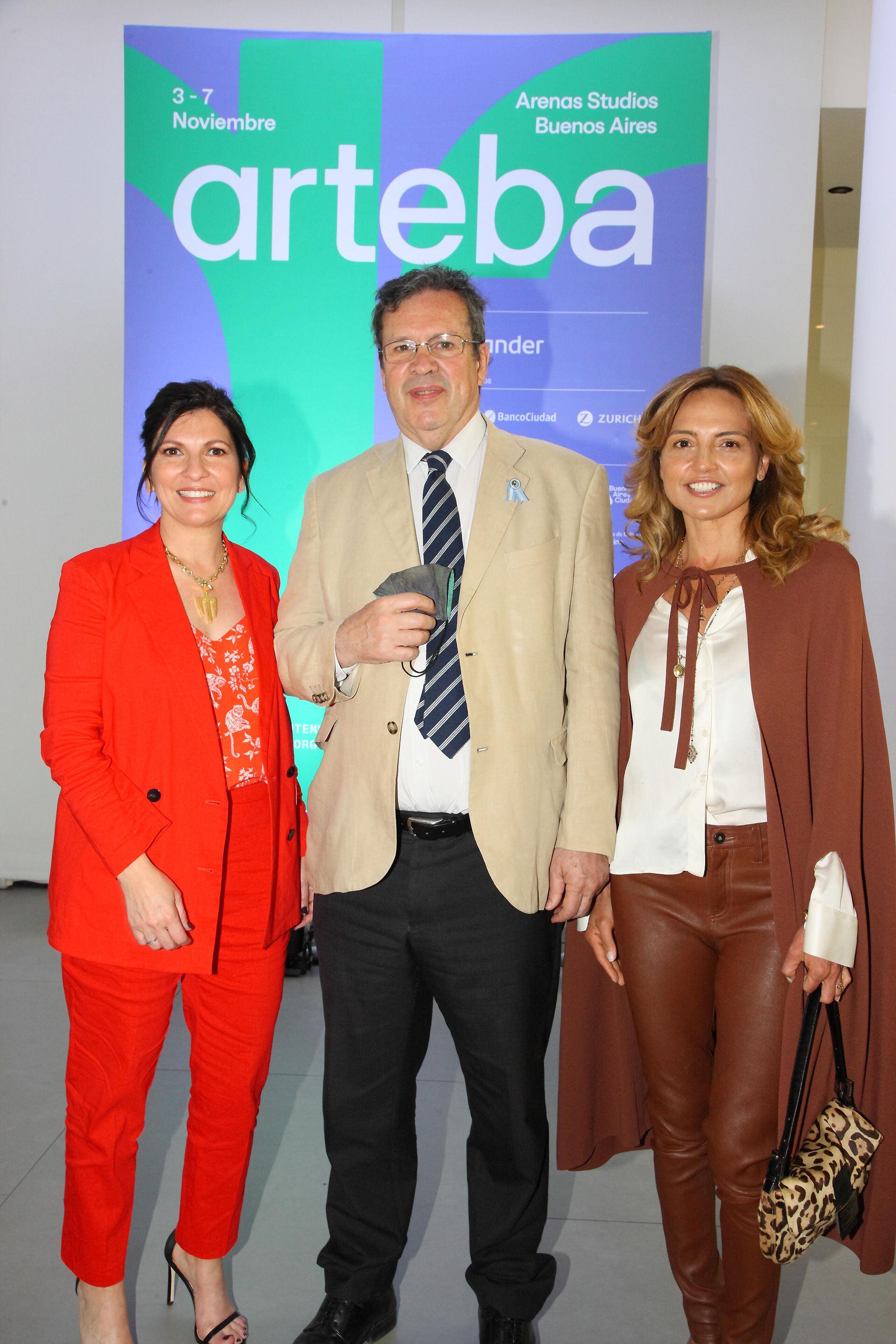 El ministro de Cultura porteño, Enrique Avogadro, junto al presidente del Banco Ciudad, Guillermo A. Laje, y la síndica de esa entidad, Paula Villalba