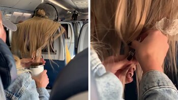 Una mujer se puso cómoda en su asiento del avión y, para no marcarse el pelo, lo tiró encima del respaldo, dejándolo caer “sin querer” sobre la pantalla de la pasajera de atrás.