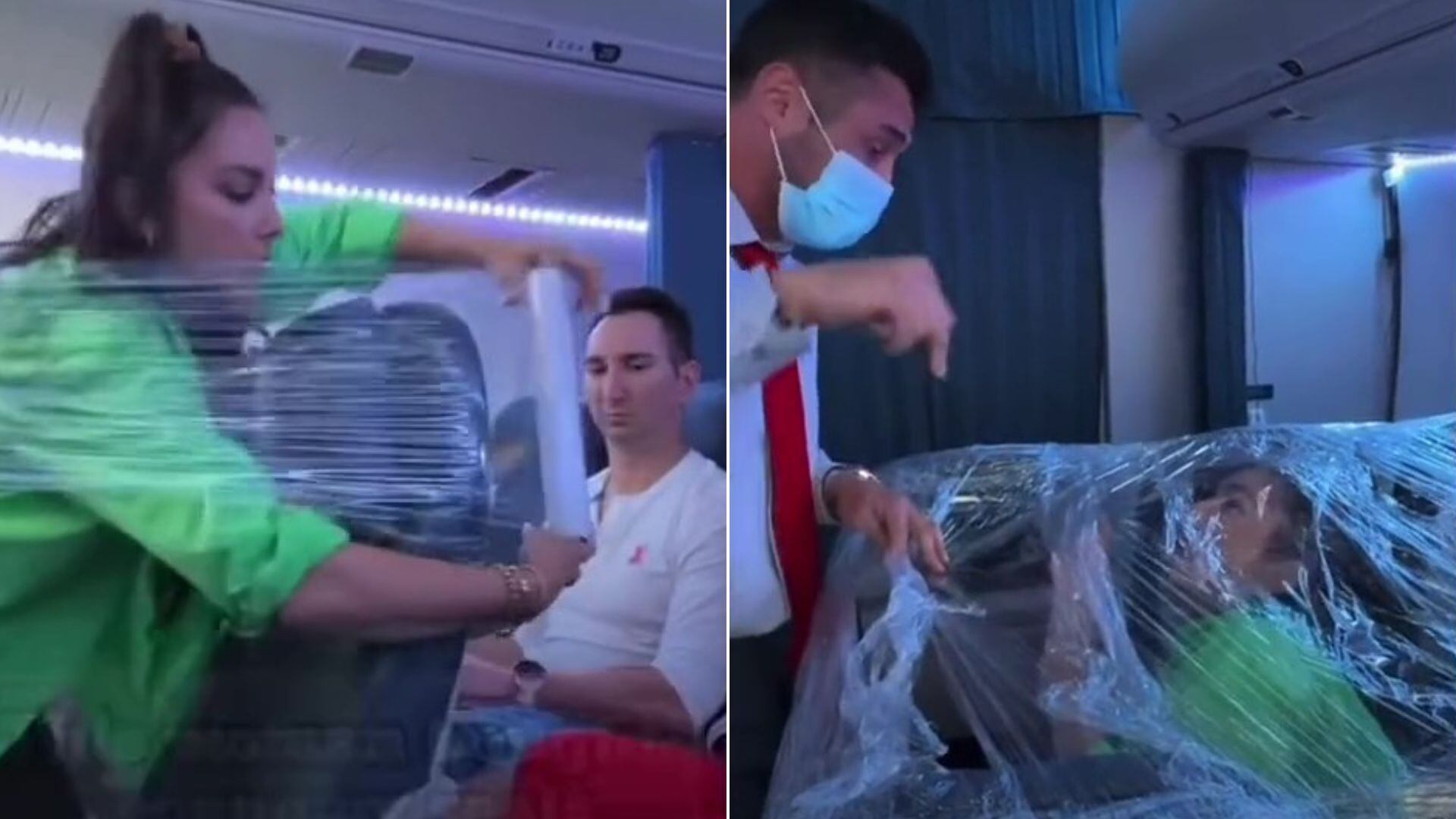 En un insólito incidente, una pasajera fue severamente reprendida después de transformar la fila de asientos en un improvisado fuerte utilizando envoltura de plástico durante un vuelo. Esta mujer disponía de tres asientos para ella sola y su plan extremo no fue permitido.
