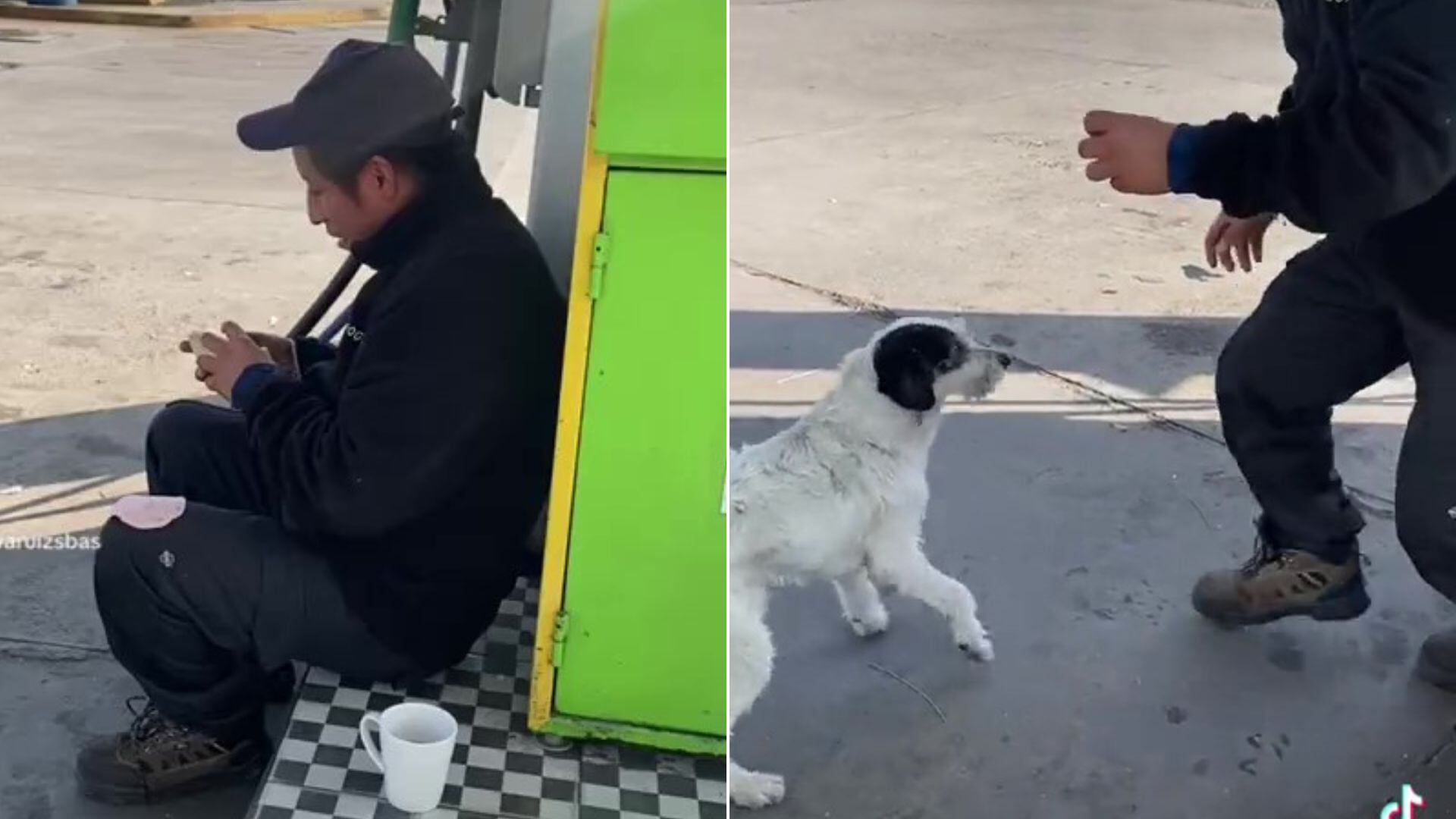 El hombre estaba con una taza de infusión en el suelo y un pan en su rodilla, mientras retiraba las migas y saboreaba una rebanada de jamón. Ajeno a lo que sucedía a su alrededor, el perrito de pelaje blanco y negro se acercaba sigilosamente hasta estar a pocos centímetros del delicioso bocado. Sin perder la oportunidad, el astuto can extendió su hocico y se llevó el pedazo de jamón.