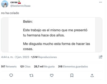 Además, muchos intentaron justificar su acción con ironía. “¿Y si Belén fue quien le hizo el trabajo a su hermana hace dos años?”, le preguntó otro usuario, riendo de la situación.