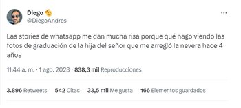 El publicista Diego Andrés, afincado en Madrid, inició una reflexión en su perfil que rápidamente se volvió viral. Se cuestionaba por qué se encontraba mirando las fotos de graduación de la hija del señor que, hace cuatro años, fue a arreglar su heladera. Un pensamiento que resonó en la mente de muchos usuarios, quienes visualizaron el posteo más de 800 mil veces, y le dieron 35 mil “me gusta”.