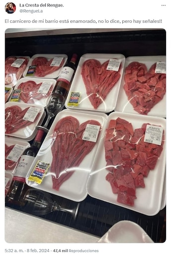 “El carnicero de mi barrio está enamorado, no lo dice, pero hay señales”, expresaba en su posteo. Este detalle, en apariencia simple, se convirtió en un ejemplo viral de cómo los comerciantes pueden conectar de manera genuina y creativa con las festividades y sus clientes.